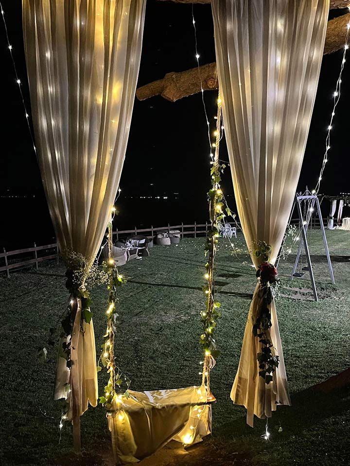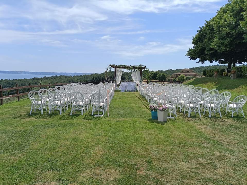 All’ interno del parco di 4 ettari, dotato di piscina ed angoli fioriti, potrete ricevere i vostri ospiti con un gradevole aperitivo di benvenuto, servito all’ombra dell’elegante gazebo. La terrazza panoramica, con circa 600 posti, sarà, invece, lo scenario perfetto per il banchetto durante la bella stagione. Se preferirete, nella sala interna avrete un ambiente elegante, accogliente e climatizzato, con circa 300 coperti. La location è dotata di una sala ricevimenti, una terrazza panoramica con vista lago, il verde giardino con piscina a bordi fioriti, Disponibilità per cerimonie con rito civile, Suite nunziale, ampio parcheggio e servizio di allestimento e catering con un solo evento al giorno fino alle 02:00.